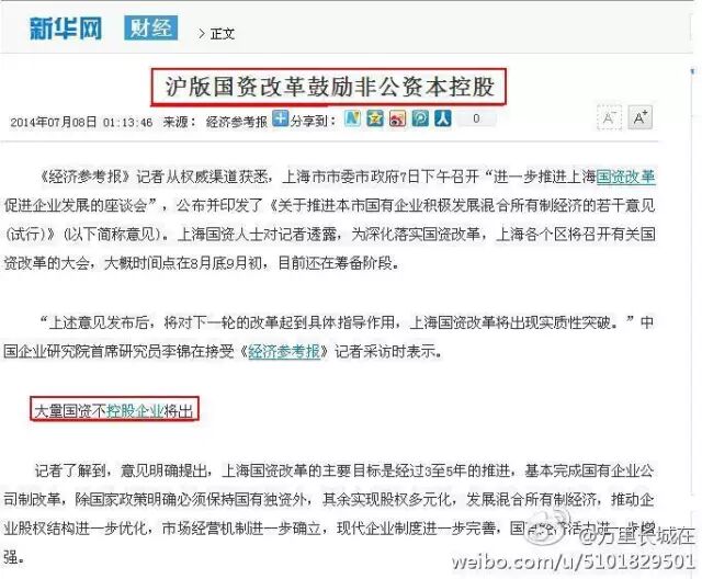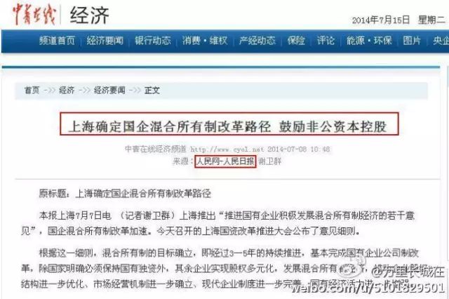 附:《中共上海市委办公厅上海市人民政府办公厅关于推进本市国有企业积极发展混合所有制经济的若干意见(试行)》全文和权威媒体解读截图。