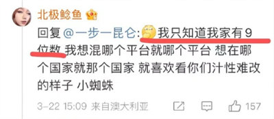 更甚至于一边炫耀她家的钱是9位数,一边用极其无耻的话来疯狂的侮辱她的母国和她所在的民族。