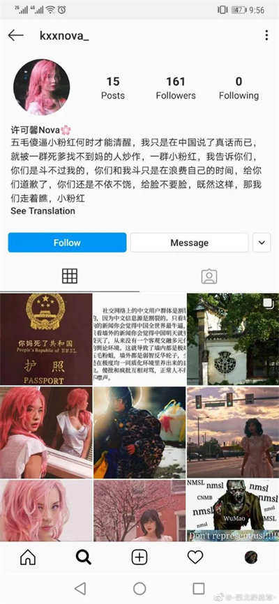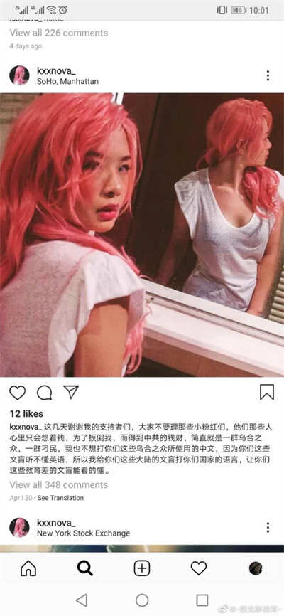 至今,许可馨仍在网上炫富,仍在网上侮辱她的母国和她所在的民族,而且是肆无忌惮。