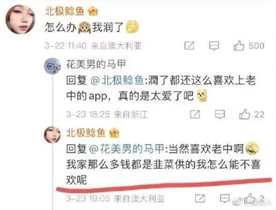 来自苏州的许可馨,她的名言是“一靠爸妈的钱和人脉二靠苏州的平台和资源,个人努力和这些比起来丝毫不值得一想”。