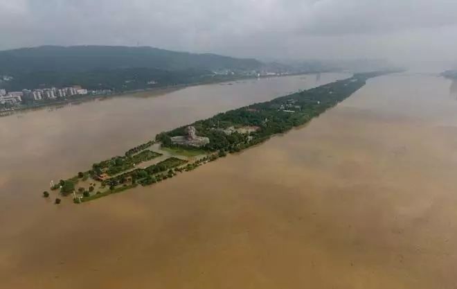 图:2017年7月,洪水肆虐长沙,橘子洲头被洪水淹没