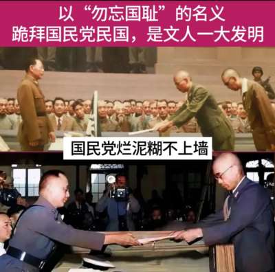 以“勿忘国耻”的名义致敬国民党民国,甚至跪拜国民党民国,是反毛文宣的一大发明。