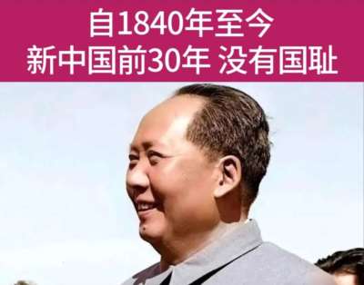 自1840年至今,只有毛主席时代,即新中国前30年,丝毫没有国耻,不仅没有国耻,还洗雪了前朝的旧国耻。