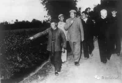 【1958年8月6日,毛主席到河南省新乡专区七里营人民公社视察时,来到农田间查看农作物生长情况,留下了这张珍贵照片】