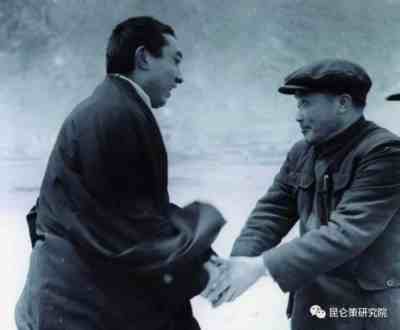 【1959年4月5日,西藏军区司令员张国华(右)迎接十世班禅额尔德尼到拉萨】