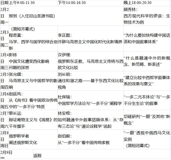 新马书院与尼山圣源书院“贯通中西文化学者师资班”将于2026年2月3日至2月8日共同举办六天“打造融通中外叙事体系培训研修班”。此次活动同时作为尼山圣源书院“贯通中西文化学者师资班”第三期冬令营(2026),主题为“一眼解天下、透视中俄西马文化”。