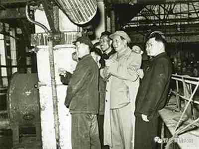 【1958年3月下旬,毛主席考察重庆钢铁公司,图为在大型轧钢车间】
