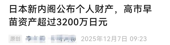 除了所谓的“文明”,还有所谓的“清廉”,也是公知吹乌的一大惯用话术。之前他们列出乌克兰官员的财产,大吹特吹乌克兰的“清廉”,所以,当他们列出日本官员财产的时候,他们想说什么,也就一目了然了。泽连斯基的“清廉”早就成笑话了,高市早苗呢?就算高市早苗“清廉”,然后呢,她对中国的恶意就能被原谅了?还是她的战争叫嚣就不用撤回了?