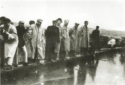 ◆1958年,余秋里在四川川中地区观看油田喷油。