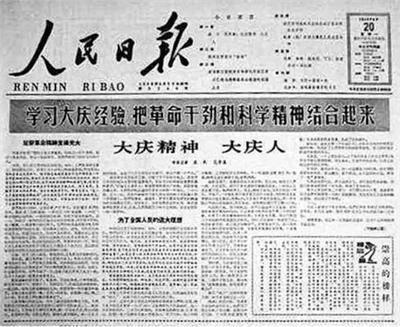 1964年4月20日,《人民日报》发表了袁木、范荣康合写的通讯《大庆精神大庆人》,报道了大庆人吃大苦、耐大劳,为让祖国抛掉贫油帽子而忘我拼搏的感人事迹。同时,还发表了编后话,指出:“大庆精神,就是无产阶级的革命精神。大庆人,是特种材料制成的人,就是用无产阶级革命精神武装起来的人。这种精神、这种人,正是我们学习的崇高榜样。”此后,《人民日报》又陆续发表了不少有关大庆油田的报道。