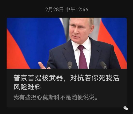 正因如此,普京才能在关键时刻“提核”,而美帝方面自然也能够从中获得最起码的信号——因为这本来就是现代世界最起码的也是最重大的战略常识。美国的资本统治精英不管怎样不如他们的前辈那么有战略远见,在事关核的问题上,脑子还是清楚的。