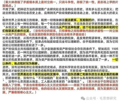 综上所述,马克思主义哲学底线的坚持方面,毛主席和他领导下的理论工作者们从来就强调要以对立统一的观点为唯物辩证法核心,坚决坚持人在生产力的主导作用,坚持社会主义社会存在矛盾、存在阶级矛盾,区分唯心主义和不可知论……正是因为斯大林好多思想是不符合马克思主义、不符合科学社会主义的,他执政时期,苏联就产生了资产阶级,就产生了吸无产阶级血的资本主义复辟,实行了无产阶级没有管理权、不符合列宁关于全社会劳动者参加实际管理正确思想的“先锋队“政治经济全面的包办代替。这些都是毛主席所坚决反对的。