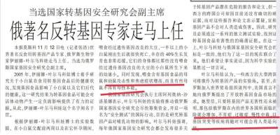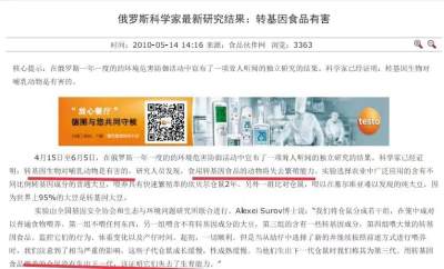 (见《俄罗斯科学家最新研究结果:转基因食品有害》2010-05-14