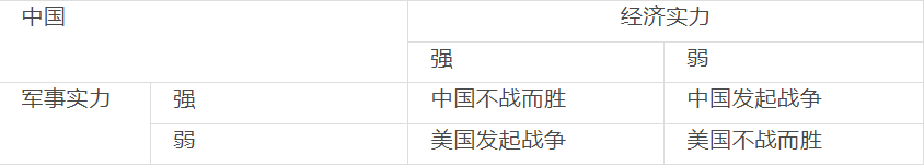 换句话说,中国的经济实力越强,军事实力越弱,美国发动战争的倾向就越强。