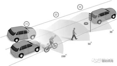 特斯拉汽车的包括视频摄像头在内的传感器分布