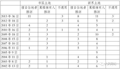 表:2002~2013年香港已裁决案件中擅自佔地者或业主胜诉的情况