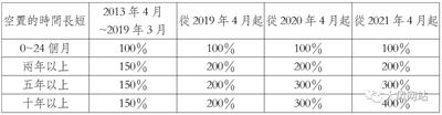 表~1:BCP管理区空置物业需缴纳的市政税比率变化