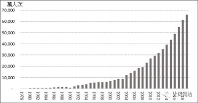 图~3:1978~2019年中国民航旅客运输量(单位:万人次∕年)