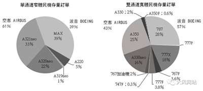 註:“(左图)空客对波音在单通道民机的市场端已经佔据了明显的优势,……(右图)波音凭藉更大的777X以及货机的传统优势在宽体领域仍然领先空客,同时也在面临空客A350~1000与A350F货机的有力挑战。”(〈一图读懂波音空客的市场竞争〉,航空产业网2022年10月3日)