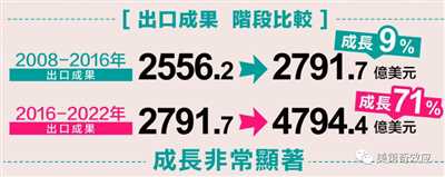 没有ECFA,台湾出口八年增长不过9%,有了ECFA之后,八年出口暴增71%,几乎翻倍。可以说,没有ECFA,就没有今日的台湾经济。