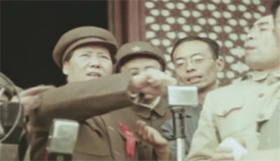 中国人民解放军朱德总司令宣读《中国人民解放军总部命令》:“我命令中国人民解放军全体指战员、工作员,坚决执行中央人民政府和伟大的人民领袖毛主席的一切命令,迅速肃清国民党反动军队的残余,解放一切尚未解放的国土,同时肃清土匪和其他一切反革命匪徒,镇压他们的一切反抗和捣乱行为!”