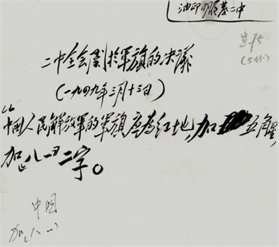 毛主席亲自起草军旗决议,是八一军旗设计人。一九四九年三月十三日,中共七届二中全会通过毛主席起草的《关于军旗的决议》:中国人民解放军的军旗应为红地,加五角星,加“八一”二字。一个多月后,毛主席指挥英勇的中国人民解放军百万雄师强渡长江,解放南京,占领蒋介石总统府,降下国民党政府的青天白日旗,升上胜利的红旗,宣示国民党反动政权的垮台灭亡。