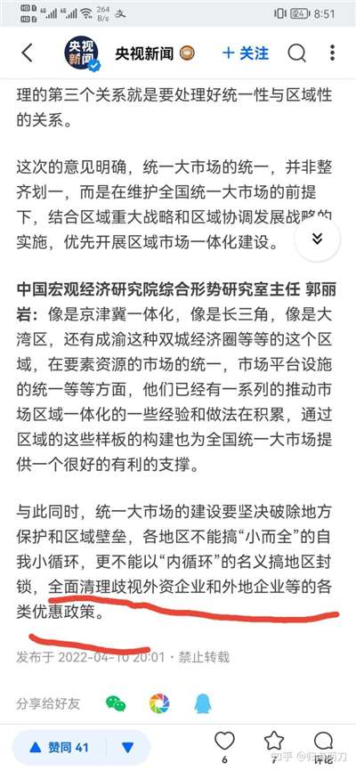 一份解读还强调“全面清理歧视外资和外地企业的各类优惠政策”。