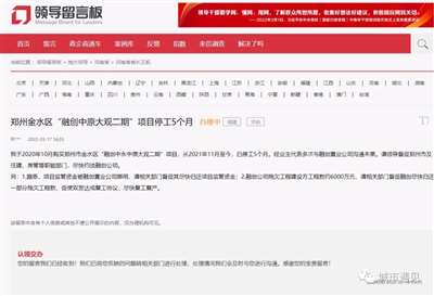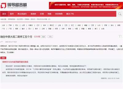 3月,当地有关部门对融创中原大观停工的解释。