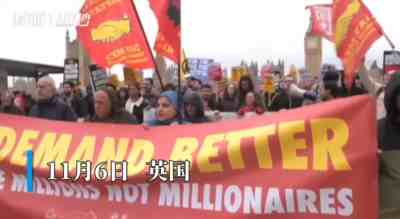 今天有一个新闻上了热搜,11月6日,成千上万人参加了在伦敦举行的呼吁举行大选的游行示威活动。报道称,一个工会和社区组织联盟参加了在伦敦市中心举行的“英国破产了”示威活动。示威者要求立即举行大选、就低薪资采取行动并废除“反工会”的就业法。