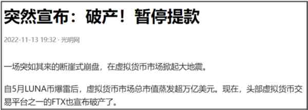 最近头部虚拟货币交易所FTX爆了个大雷,已经宣布破产了。