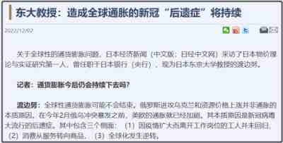 关于第三点,疫情对全球通胀的影响,日本东京大学教授渡边努最近接受采访时表示“全球性通货膨胀可能不会结束。俄罗斯进攻乌克兰和资源价格上涨并非通胀的本质原因。