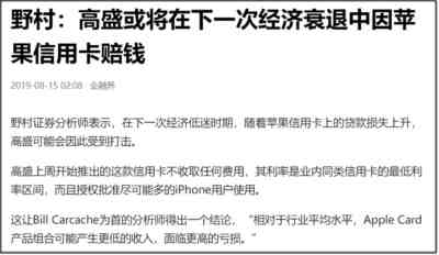 这个Apple Card是2019年推出的,当时刚推出时,就有一些大机构认为,高盛可能会在下一次经济衰退中,因为Apple Card赔钱。