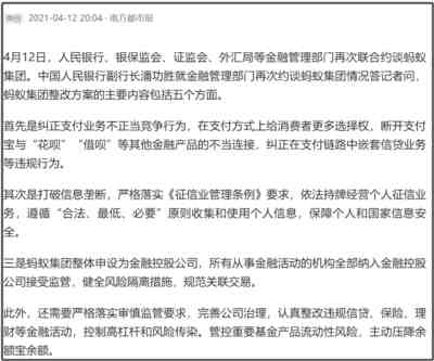 并且在2021年4月12日,对蚂蚁第三次约谈里,提出更加细致的整改方案。