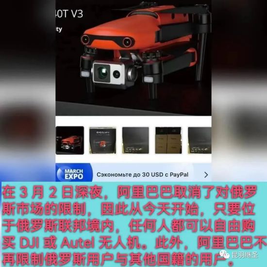 在美国两大军火巨头洛克希德·马丁和雷神公司拒绝按期缴纳中国开出的千亿罚单后,中国的反制牌尚未打出,就在3月2日晚,阿里巴巴率先干了一件事,决定一视同仁,将俄罗斯与乌克兰同等对待,取消对俄罗斯市场的限制。只要位于俄罗斯境内,任何人都可以自由购买阿里巴巴上的民用商品,其中包括民用、商用无人机。