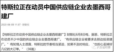 最近看到一个新闻,是说马斯克这次来华期间,动员不少中国的供应链企业去墨西哥建厂。