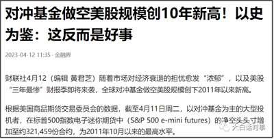 其实早在4月12日,全球对冲基金做空美股规模,就创2011年以来最高水平。