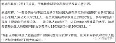 鲍威尔在去年12月1日,于布鲁金斯学会的讲话,也承认美国存在320万人的劳动力缺口。