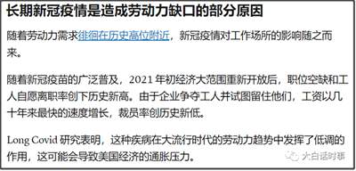 该报道最后也认同我去年一个观点,长新冠会增加美国通胀压力。