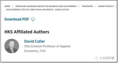 David Culter教授这篇研究,主要是对长新冠可能造成的经济成本进行估算。