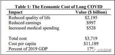 更早之前,David Culter教授曾经和美国前财长Lawrence Summers估算长新冠造成的经济成本是2.6万亿美元。