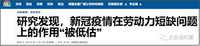 美国媒体在今年1月30日,也有报道称,研究发现,新冠疫情在劳动力短缺问题上的作用“被低估”