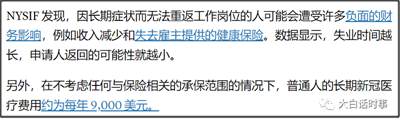 这是纽约州保险基金(NYSIF)的报告,因为保险公司要去赔偿,这样的报告是十分严谨的,包括NYSIF对长新冠的赔偿认定标准,也很严格。