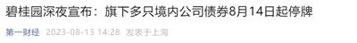 8月8日,碧桂园两笔美元债未能按时付息的消息爆出,坐实了碧桂园面临经营困难的传闻。8月10日,碧桂园表示面临自成立以来最大的困难,14日,碧桂园多支债券停牌,继恒大之后,又一家巨型房企把多年积累的风险和矛盾摆上了桌面。