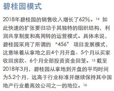 虽然全国房企都在采取高周转模式,碧桂园的“456模式”却是封神之作。碧桂园的口号是“拿地后4个月开盘,5个月资金回笼,6个月资金回正”,这不是把房地产变成了快消,而是变成了基金:碧桂园以极低成本筹集买房者的资金投资建房,交付和价格风险由买房者承担,新房销售利润是碧桂园空手套白狼的“管理费”,买房者则继续期待二级市场的增值收益。