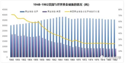 1948年,美国官方黄金储备高达2.17万吨,占世界各国官方黄金储备的74.5%。