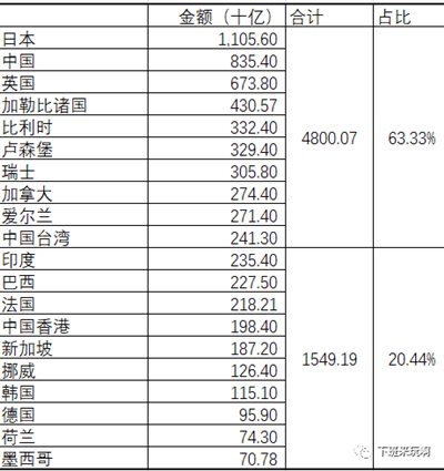 接下来我们看看海外投资者的结构(2023年6月份数据)。海外投资者合计持有债券75796亿,其中前十大债权国和地区合计持有48000.7亿,占比63.33%,前二十大合计持有63492.7亿,占比83.77%。在所有前二十大国家和地区中,除我国外,几乎全是美国的传统盟友。