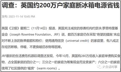 之前还看到一个比较离谱的新闻,“为节省开支,英国约有200万个家庭被迫关掉冰箱电源,显示英国生活成本危机仍在伤害低收入家庭。”