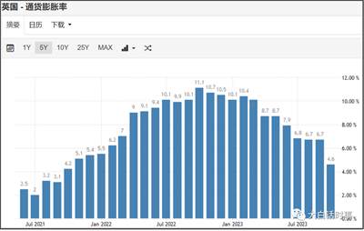 英国10月最新的通胀率虽然大幅下降至4.6%,但仍然处于高位。