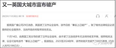 但现在英国央行维持高利率,这些地方政府融资渠道受限,无法借新还旧,自然只能宣布破产。