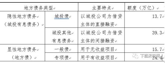 在隐性债务中,城投公司直接融资形成的城投债额度为13.7万亿,城投其他有息负债(主要是银行贷款)约为39.3万亿。